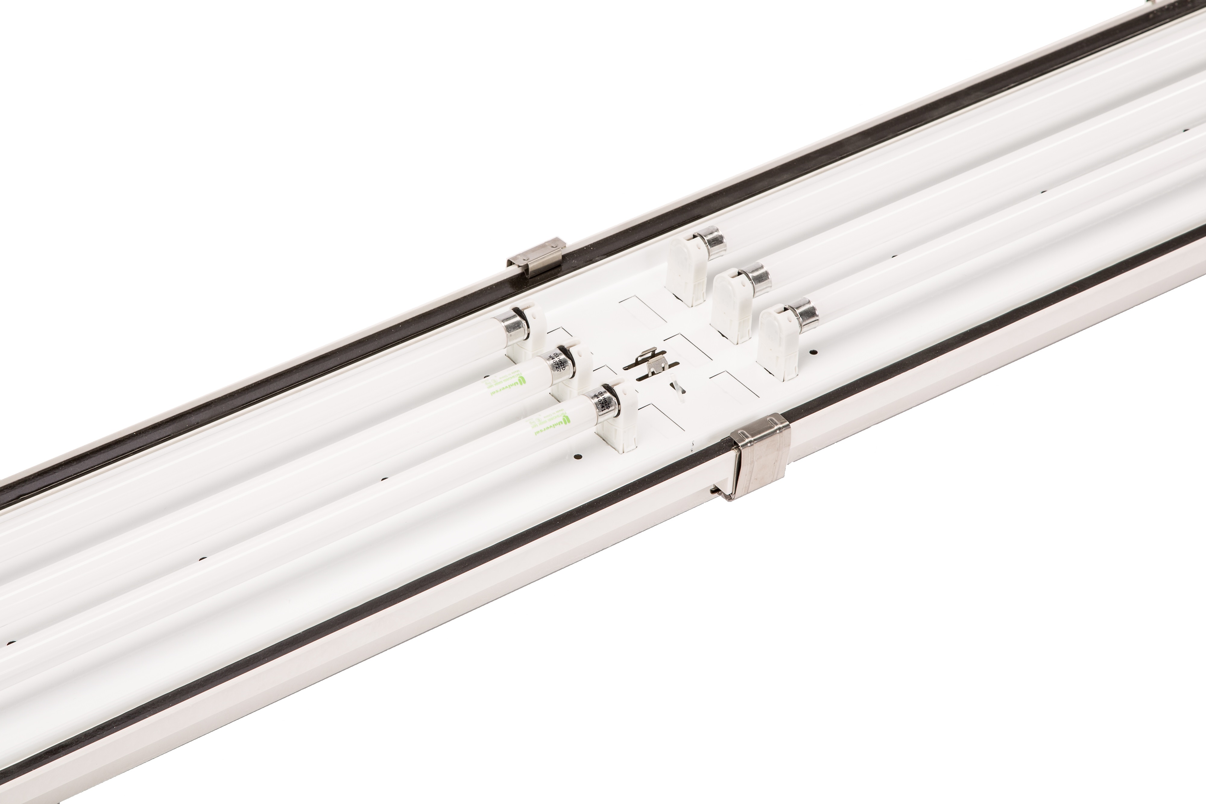 An IP67 waterproof fluorescent fixture for agricultural, commercial, warehouse and industrial buildings.